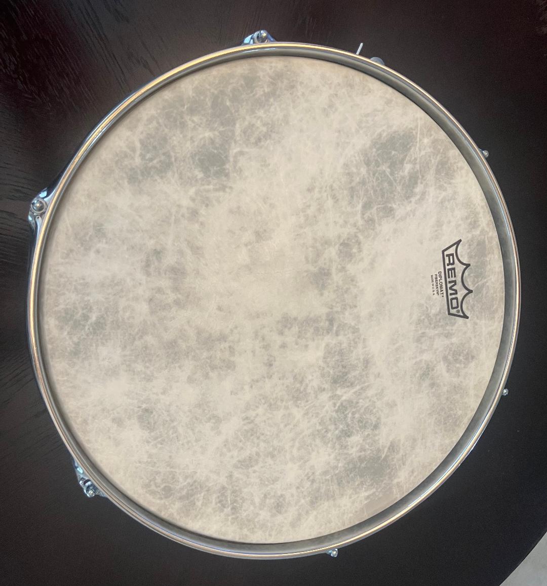 This is a rather new addition to my Ludwig collection. A 2022 Ludwig Standard Maple Series constructed of five plies of maple and finished in Weathered Oak. Measuring in at 14″ X 8″ with new Atlas P-88 throw-off and P-35 Strainer. It is a nice compliment to my 6.5″ deep Standard Maple in Aged Olive finish.
